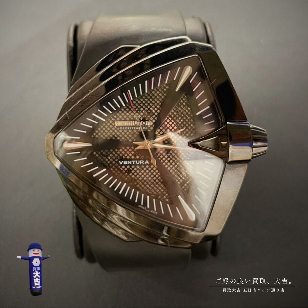 <買取に持っていくキッカケは?> 壊れて使用しなくなったため売却。 🔷――――――――🔷 広島で高価買取なら 買取大吉 五日市コイン通り店へ お任せ下さい\(^o^)/ ブランド時計を売るなら当店へ♪ ハミルトンは、 1892年にアメリカで誕生した 時計ブランド⌚ 創業当時から精度の高い時計を生産し 注目され、知名度、信頼性を得る。 本日はハミルトンの魅力をご紹介💡 ◆独創的で幅広いデザイン ハミルトンは、 多種多様なデザインを展開。 スーツに合う落ち着いたモデル、 ミリタリーウォッチ、 三角形のデザインなど、 人とは違う個性的な時計をお探しの方に ピッタリ。 ◆コスパの良さ&幅広い価格帯 搭載している機械(ムーブメント)は、 オメガやフランクミュラー等にも 供給していたETA社のものを使用。 お手頃価格のものから 高級なモデルまで 幅広い価格設定もハミルトンの特徴。 ファーストウォッチや、 ご自身、大切な方への いい時計をお探しの方、 たくさんの方に選んでもらいやすい。 ◆認知度の高さ 雑誌やドラマ、映画など、 数多くハミルトンの時計が登場し話題に。 メンインブラック、スパイダーマン等 多くの作品でハミルトンの時計を 見ることができるので 気になる方はチェック! 🔷――――――――🔷 大切にしてきたモノをしっかり鑑定いたしますので 品数が多い時・外出できない時・整理目的で まとめて見て欲しい時もご相談下さい。 国内外の豊富な販売ルートと、 BtoB専門の自社オークションサイトを 運営している買取大吉なら、 他社圧倒の"高価買取"を実現できます! 広島県広島市佐伯区五日市にある 【買取大吉 五日市コイン通り店】は、 金買取・貴金属買取・ダイヤ買取・ ブランドバッグ買取・ブランド時計買取なら お気軽にご相談ください! 金・貴金属・ダイヤモンド・ ブランドバッグ・時計はもちろん 切手・洋酒などのお酒・着物や骨董品等、 「こんなもの売れるかな...?」とお考えの品物まで、 すべて無料査定させていただきます! 一般的にかかってしまう査定料・出張査定料・手数料 全て無料でお買取りさせていただいており、 キャンペーン等も行っておりますのでお見逃しなく。
