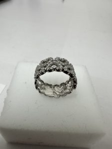 ダイヤモンドリング のお持ち込みです。 全体にメレダイヤが巻かれているデザインです。貴金属の価値と、メレダイヤの価値を合算して、高額査定にてお買取させて頂きました。サイズが合わなくなったもの、デザインが古くなっているもの、等々すべてお持ち込み頂き、換金してみてください。貴金属相場の良い時期だからこそチャンスです。