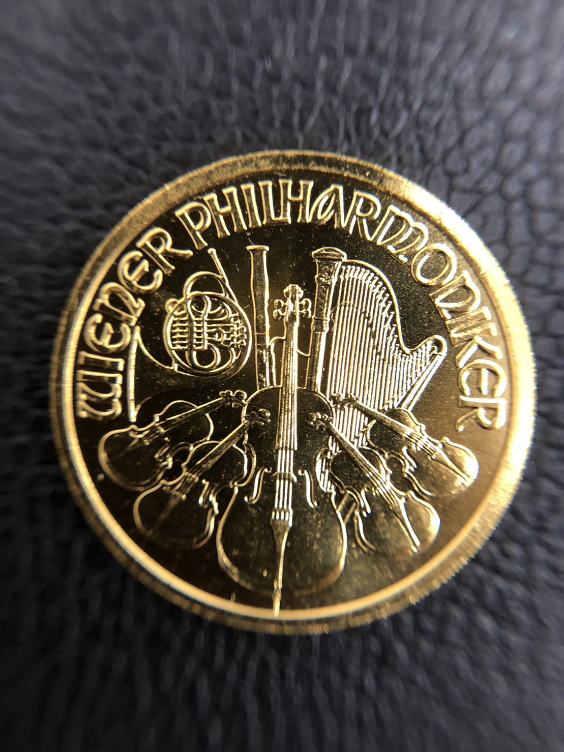 ウィーン金貨の表面には、6つの管弦楽器がレリーフされており、その美しいデザインはコレクション用としても人気があるようです☺