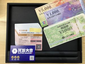 本日はJAL株主優待券・ギフト券・デパート共通商品券をお買い取り致しました。