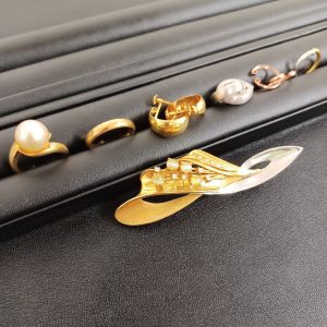 本日は18金・プラチナでできたブローチ他多数の