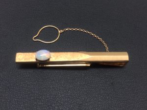 ネクタイピンのすべてがK18(18金)で作られており、本体部分にはオパールが付いています。