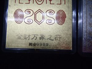 金財万象之符 純金9999と書かれたラミネート加工された純金カードと