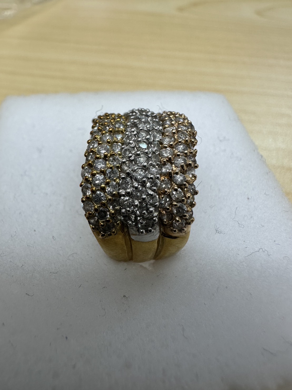K18 PT900 コンビ ダイヤモンドリングのお持ち込みです。とても重量感もあり、MDも2CT程のゴージャスなデザインです。金性の価値とダイヤモンドの価値を加味して、高額査定となり、お客様もご満足の高価買取となりました。昔にご購入された貴金属類は、金相場が高いこの時期は高額査定のチャンスになっています。ぜひ当店までお持ち込みください。ひとつひとつ丁寧にご説明しながら査定させていただきます。