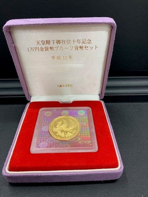 天皇陛下御在位十年記念の金貨です。金の相場が上がったことを受けて、日本の金貨の価格も爆上がりです!