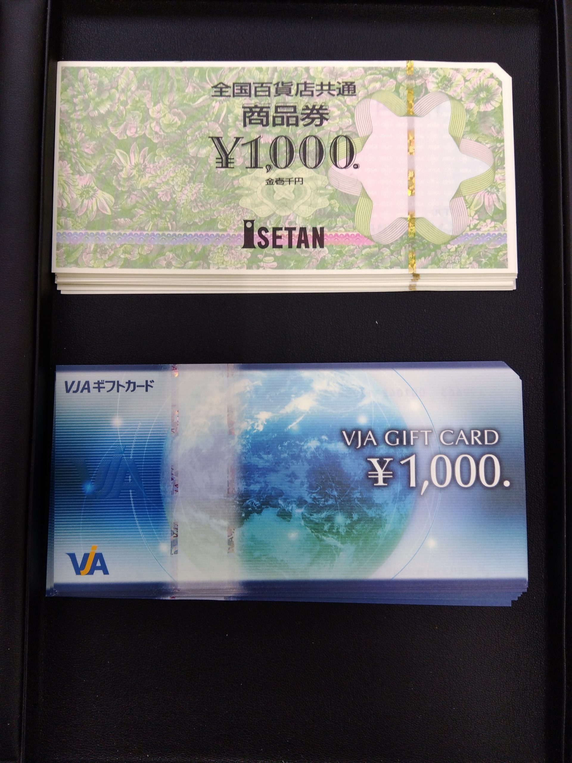 こちらの写真はVJAギフトカードと全国百貨店共通商品券でございます。