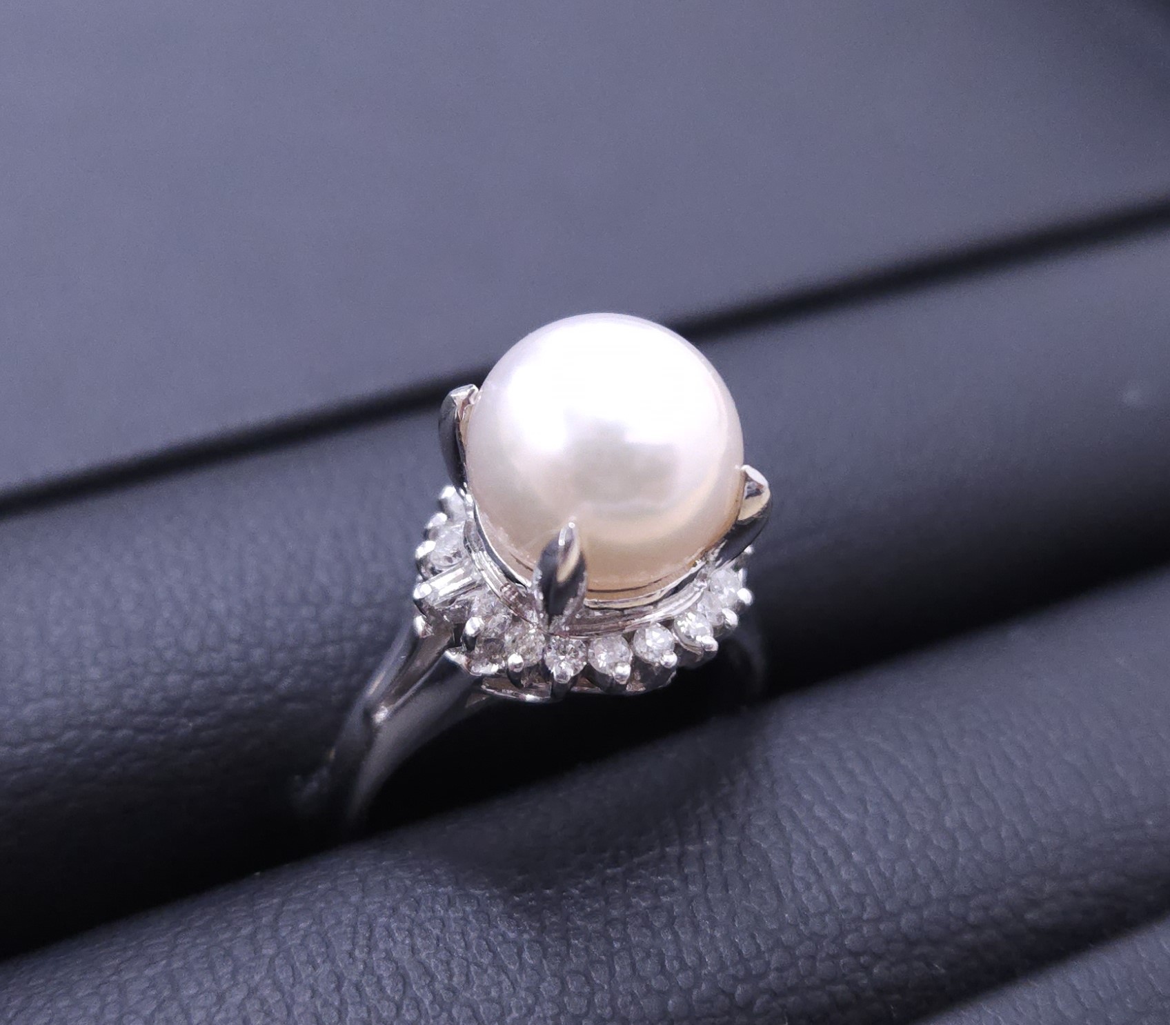 大粒のパールとダイヤモンドが装飾されたプラチナのリングです♪