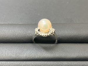 真珠の周りにダイヤモンドがあしらわれた、プラチナの豪華なリングでした!