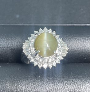 Pt900 プラチナリング クリソベリルキャッツア4.02ct ダイヤモンド0.80ct をお買取りさせていただきました。(^^♪ | 仏生山店
