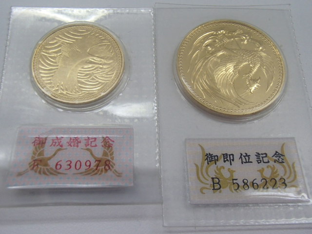 皇太子殿下御成婚記念、天皇陛下御即位記念のプレミア金貨です!