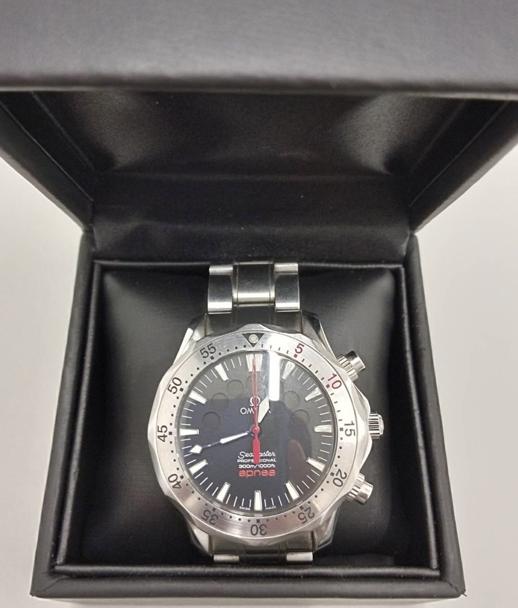 今回はオメガ シーマスター アプネアマイヨール 2595.50 黒文字盤を買取させてもらいました⌚
