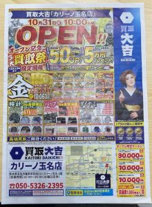 10月31日、買取大吉カリーノ玉名店、オープン! | カリーノ玉名店