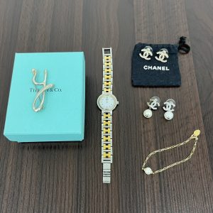 こちらは使わなっくなったシャネルのピアス、エルメスの時計、ティファニーのブローチ、チャンミーのブレスレットをお買取りさせて頂きました💗
