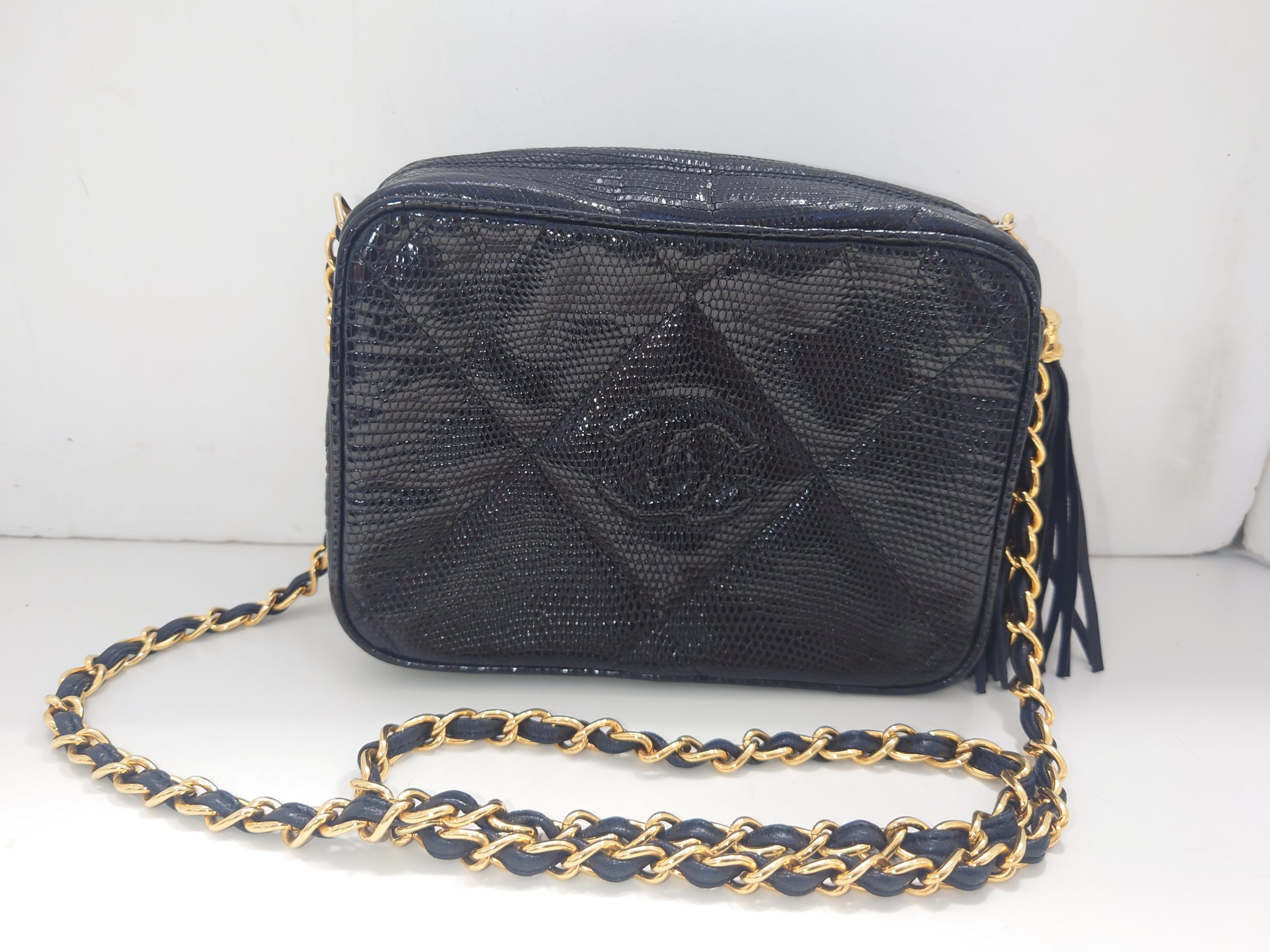 トカゲの革を使用した珍しいヴィンテージのシャネルのチェーンショルダーバッグをお持ち頂きました☆