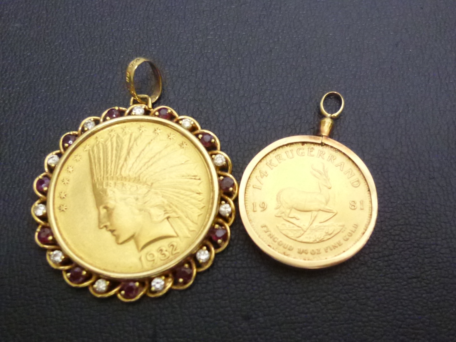 アメリカ合衆国造幣局発行のインディアン金貨(左)と
