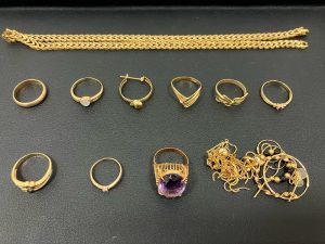 なので、金のアクセサリーならば、ちぎれたネックレス、壊れたリング、片方しかない金のピアスも高価買取しております。