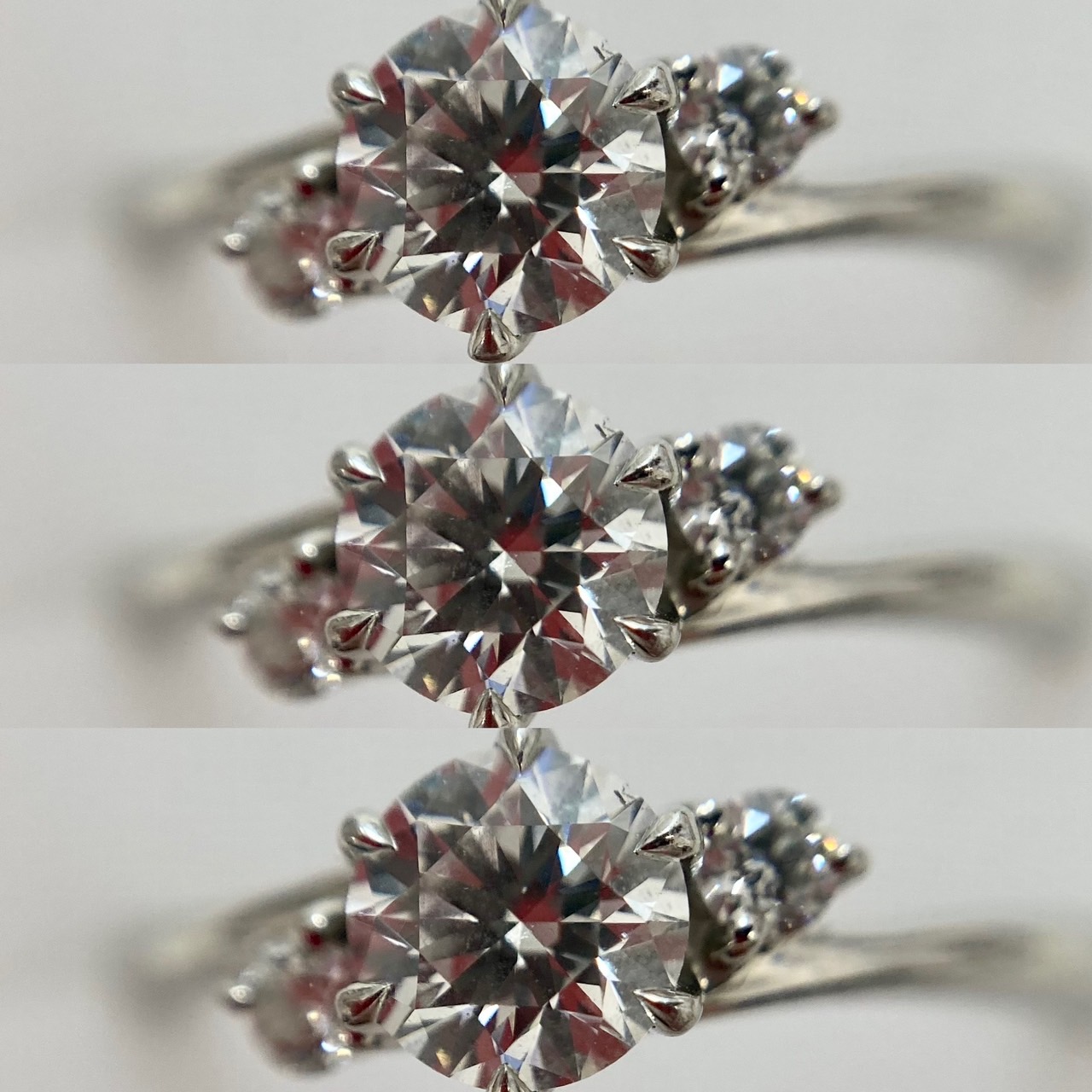 1ct以上のダイヤモンドの方が貴重なのでお値段は付きやすいですが、こちらのリングはダイヤモンドの質も良かった為