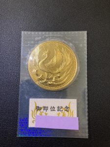 こちらはは平成2年に明仁上皇の御即位を記念して発行された金貨です。