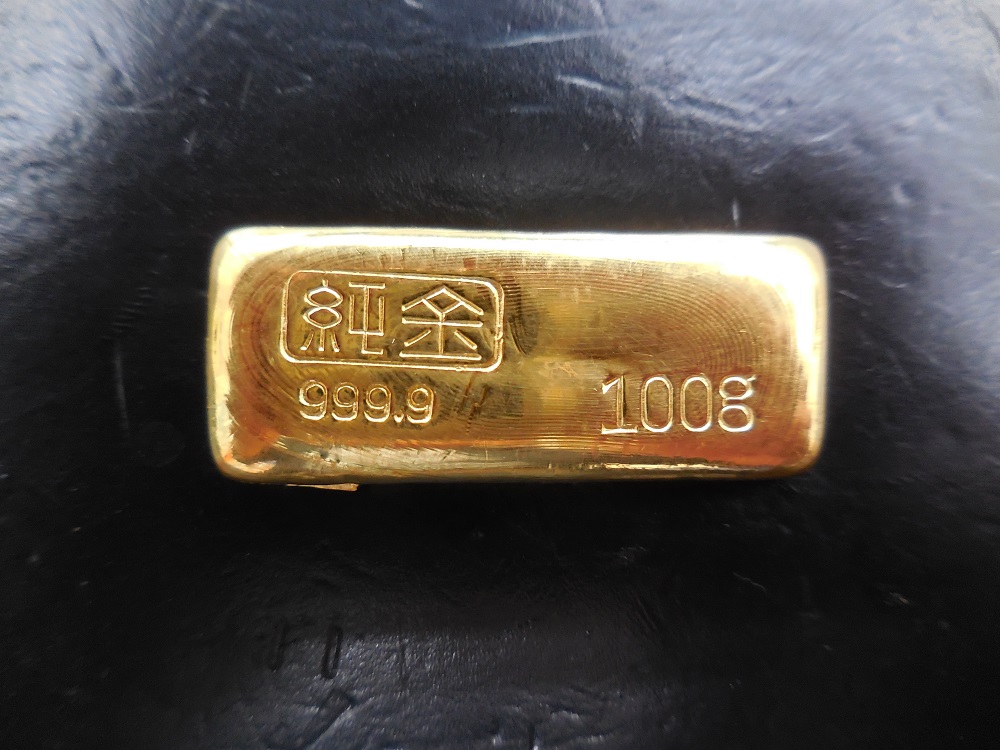 昨日の買取品(金の100gインゴット)です