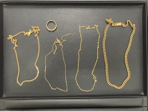 今回、お買取りさせていただいたお品物は『金のリングとネックレス』です。