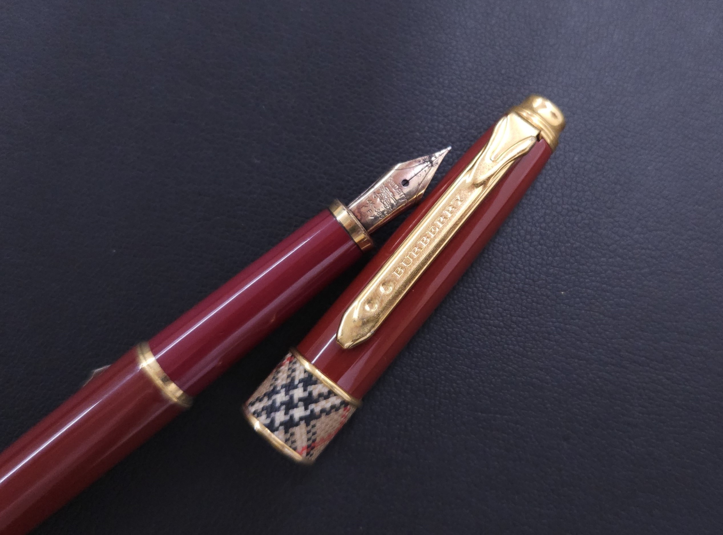 こちらの万年筆はペン先にバーバリーのロゴマーク、キャップにはバーバリーのチェック柄が施されており、高級感のあるデザインとなっております。