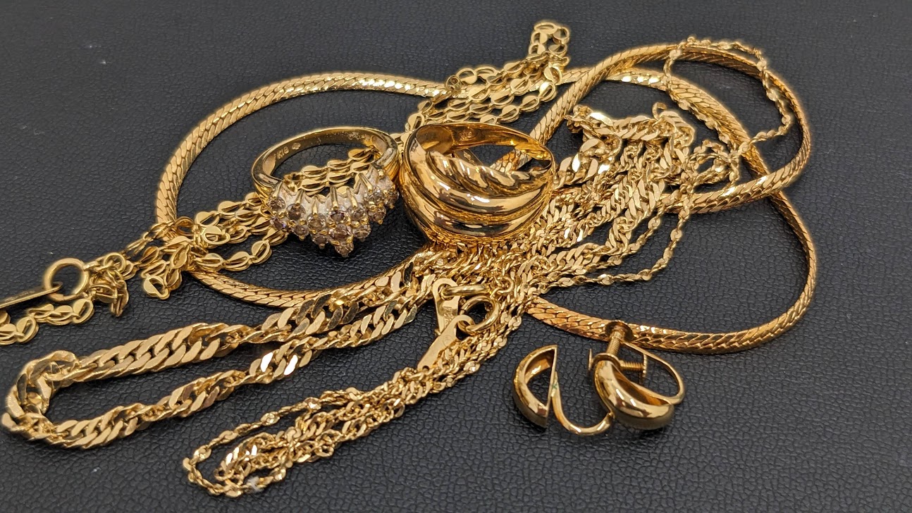 写真の様に貴金属で有れば、ネックレスをはじめ金のイヤリング、金のリング等、金ならどんな状態、