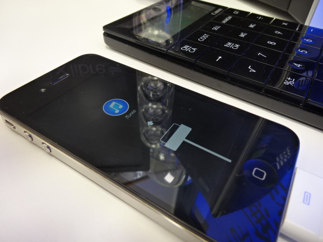 ③ホームボタンを押しながらUSBケーブルを接続します
