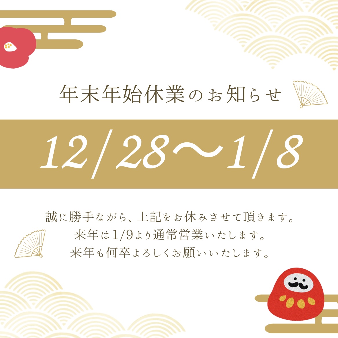 買取大吉» 店舗紹介» 岩国医師会病院前店» 岩国医師会病院前店 店長ブログ» 年末年始休業日について