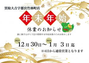 年末年始休業のお知らせ | 宇都宮竹林町店