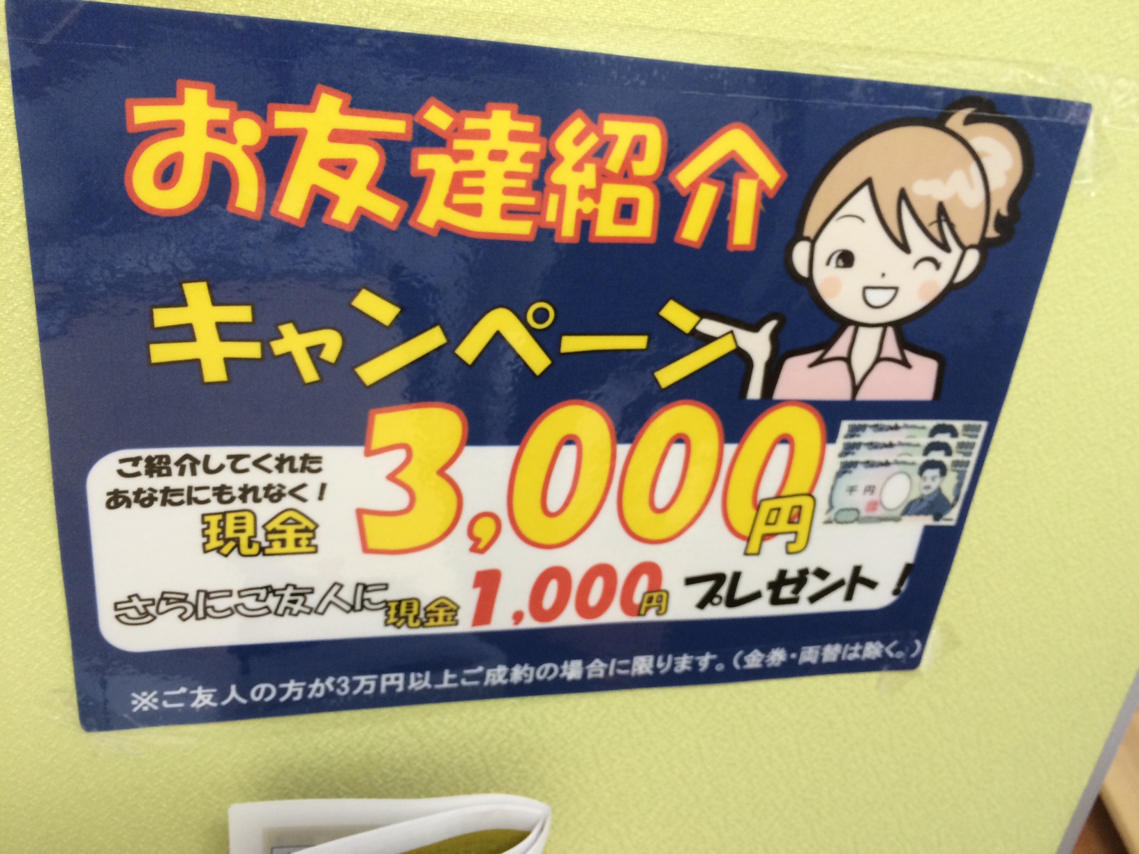 ※ただし、ご友人の方が3万円以上のご成約であること。金券・両替ではないことが条件となります。