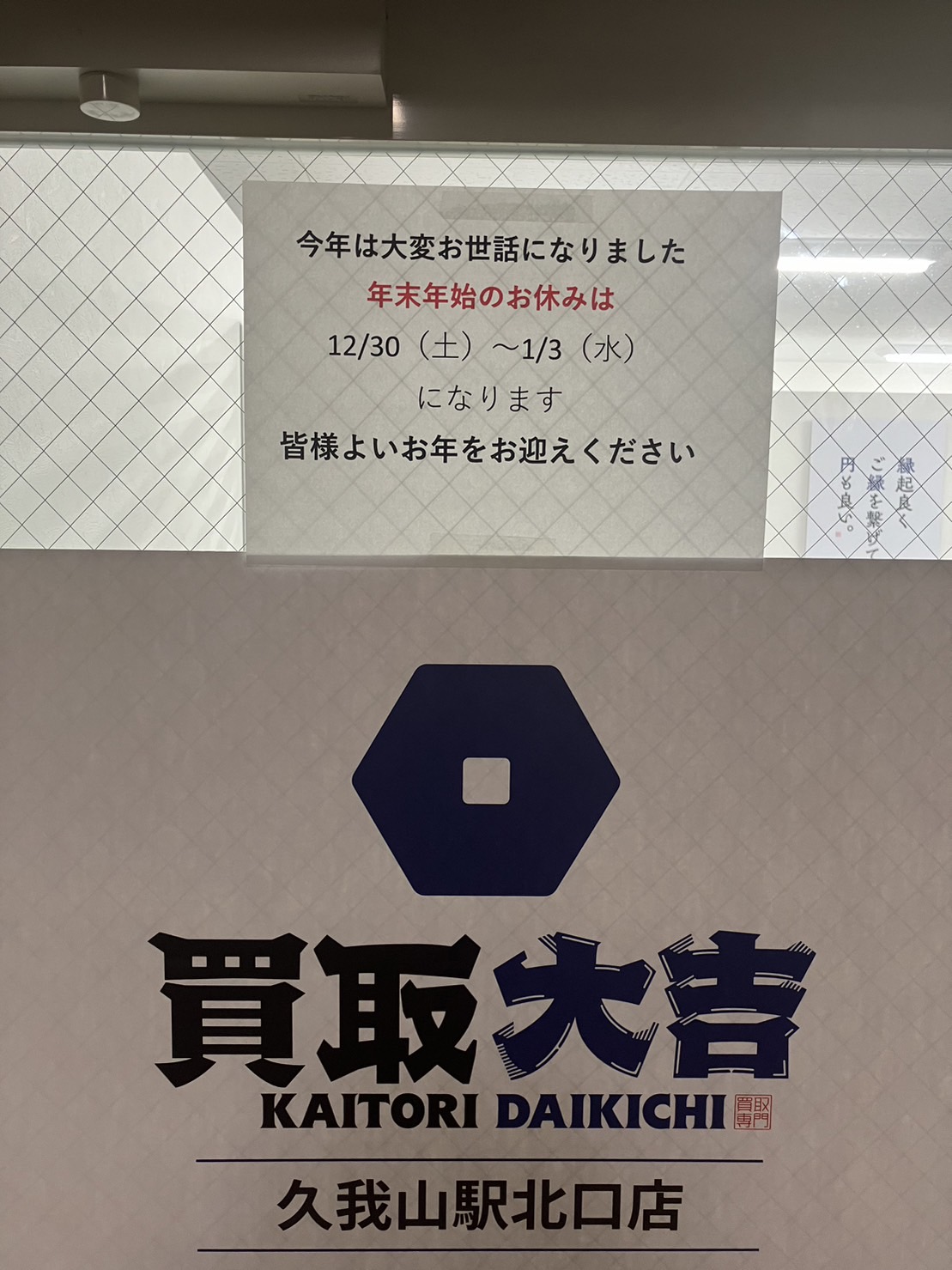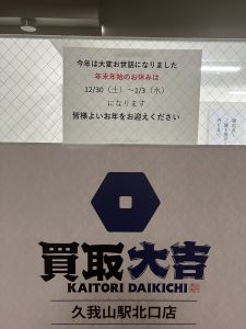 買取大吉» 店舗紹介» 久我山駅北口店» 久我山駅北口店 店長ブログ» 【年末年始の休業のお知らせ】
