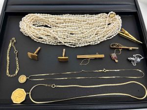 金やパールなどを買取させて頂きました。この他にもたくさんのアクセサリーをお持ち頂きましたが、メッキであり、ブランド品ではなかったので1つ1つには値段を付けられませんでしたが、メッキ品もまとめてで値段を付けて買取させて頂きました。