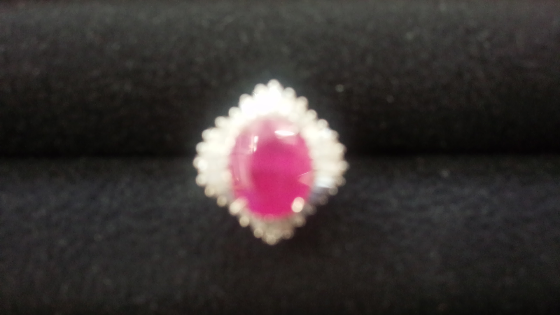 ルビーの周りにメレダイヤがぎっしりと詰まった指輪です。