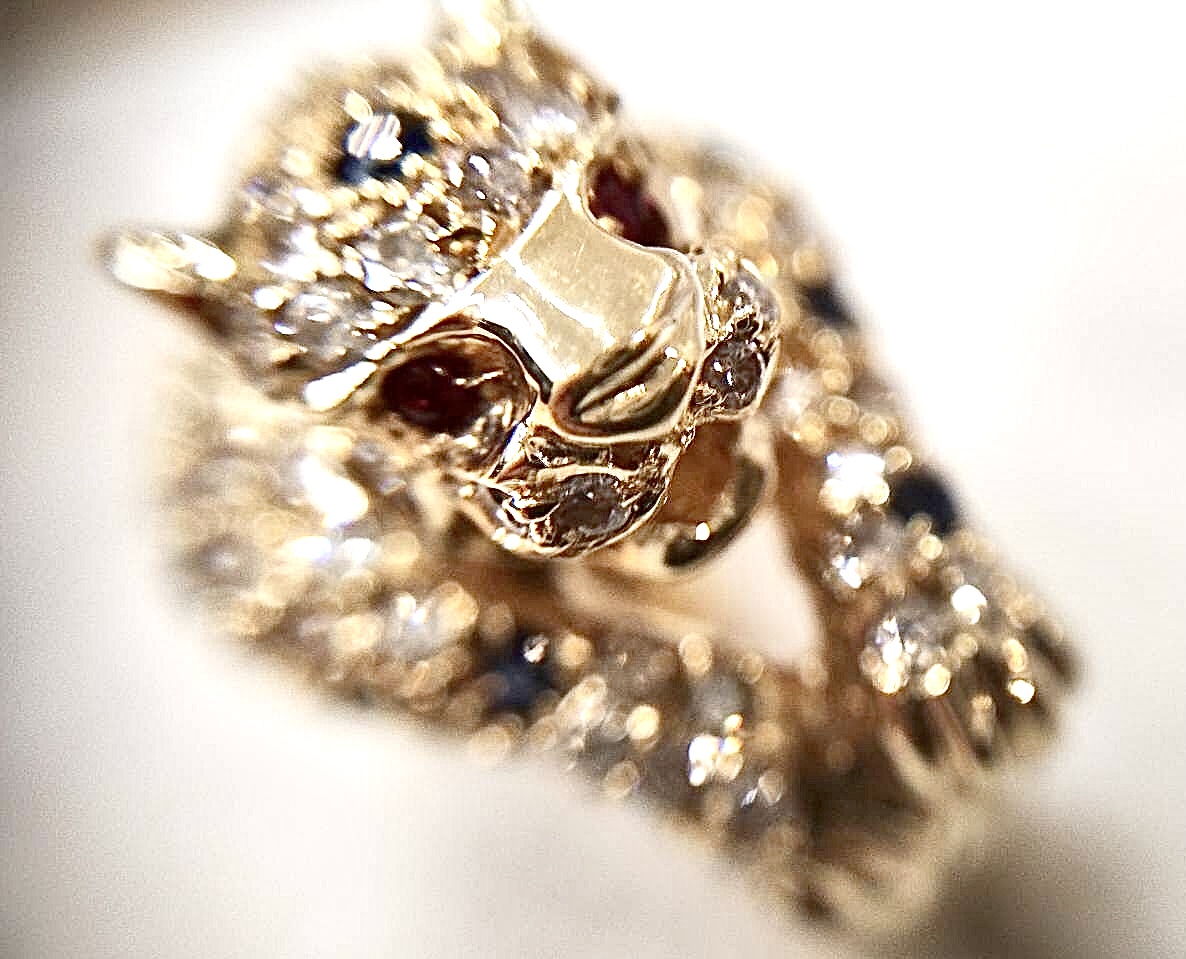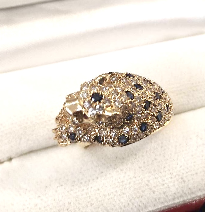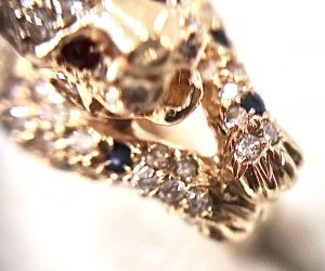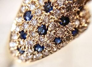 ダイヤモンドは0.60ctと大きめサイズでパンテール調のデザインリングはダイヤモンドをはじめサファイヤ、ルビーまで