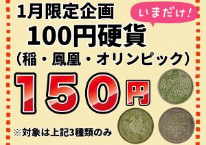 当店の今月の強化買取アイテムは、100円玉3種(稲・鳳凰・オリンピック)です!