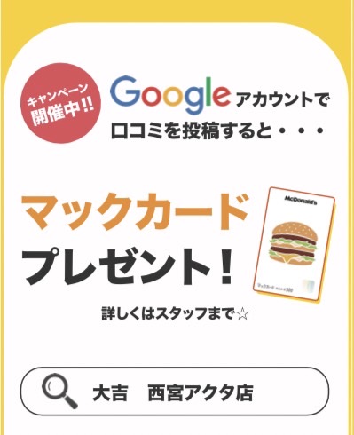 マックカードをプレゼントしております!!!