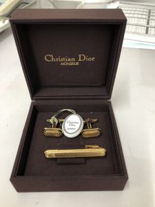 ディオール(Dior)カフス&タイピンセット チェーンアクセサリー のお持ち込みです。古めのお品物ですが、ディオールのお品物は、状態の良いお品物は高価買取させて頂いております。金メッキのお品物が多いのですが、金製のものもありますので、ぜひ当店にお持ち込みください。驚きの金額となる場合もあります!!