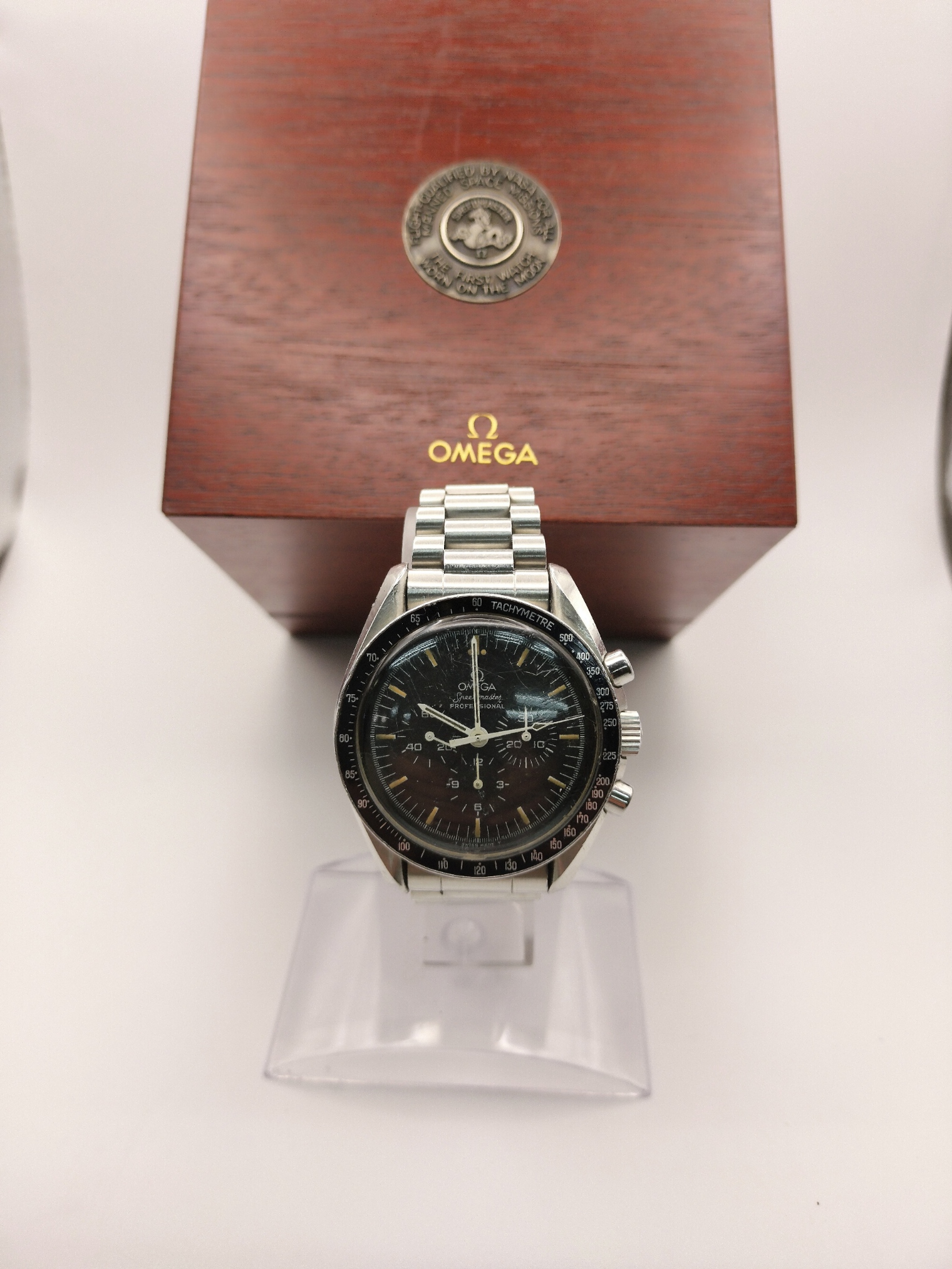 今回はオメガ スピードマスタープロフェッショナル アポロ11号20周年記念モデルをお買取いたしました。