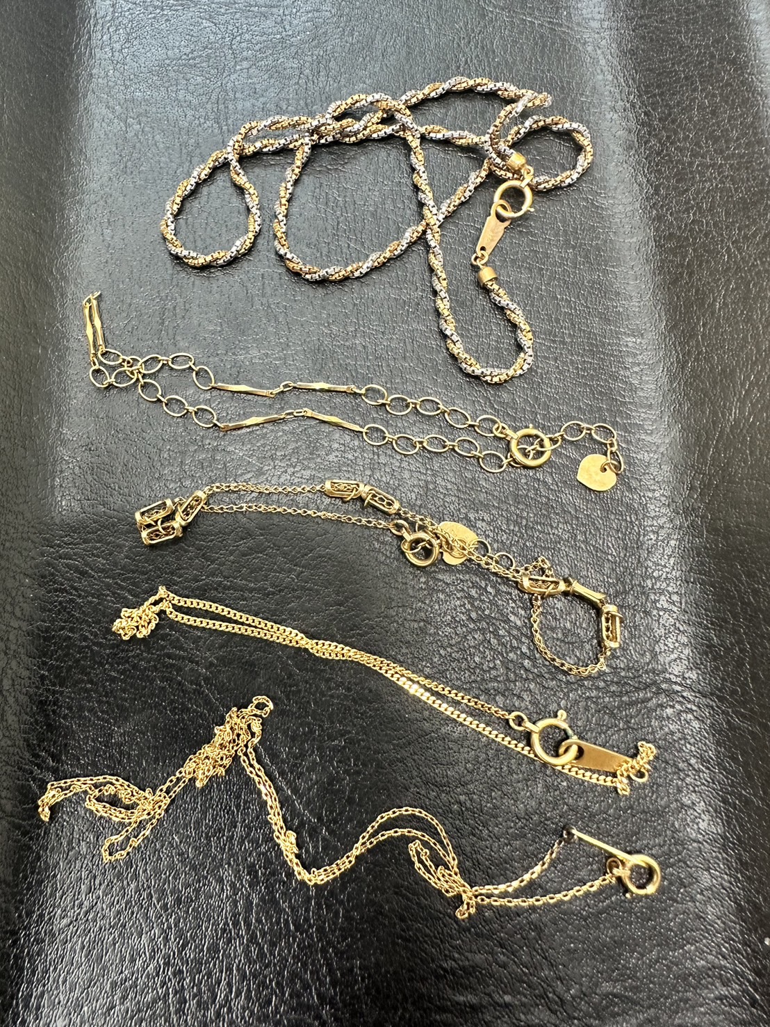 k18 チェーン & K18 PT900 コンビ チェーン のお持ち込みです。ご自宅にあったご使用にならない金を纏めてお持ち込みいただきましたお品物です。現在金相場は良好な為、ご売却を検討されるには良いタイミングです。金かどうか不明なお品物もお持ちいただければ調べることが出来ますので、併せてお持ちください。お客様お喜びの高額査定にて、高価買取させて頂きました。『1周年大感謝祭』開催期間中にお持ちいただければ、さらに査定額もUPされますので、この機会にぜひお持ち込みください。