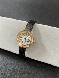 こちらはベゼル部分にダイヤを散りばめ、ケース部分に金のK18を使用した大変高級感のあるデザインです。