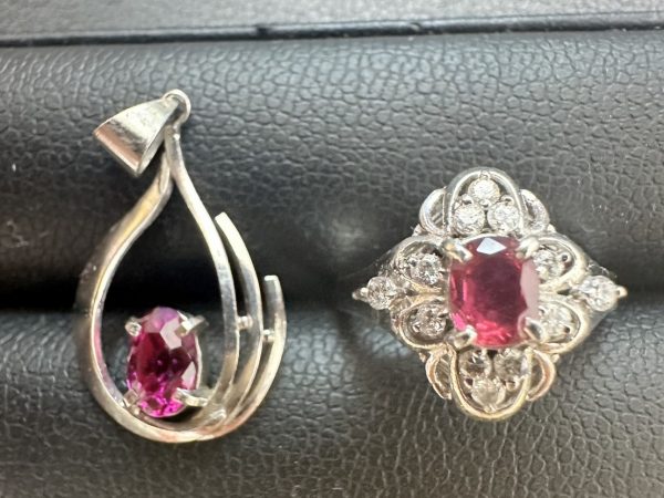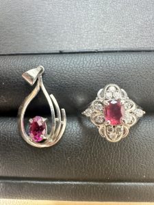 ルビー 0.66CT PT900 ペンダントヘッド リング のお持ち込みです。お揃いのアクセサリーのお持ち込みです。とても可愛らしいデザインのお品物です。ルビー自体は少し薄めの色石となっていて、プロポーションは良く、ヒビもありませんので、しっかり色石の鑑定も行い、お客様お喜びの高額査定となり、高価買取させて頂きました。貴金属の重量の価値だけではなく、色石の価値もしっかりと見極められるのは、当店には宝石専門の査定士が在籍しているからです。ぜひ宝飾品は、当店にお持ち込みください。