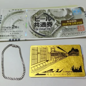 洲本市より初来店の お客様から プラチナブレスレット ビール券 テレカ 図書カード | 淡路洲本店