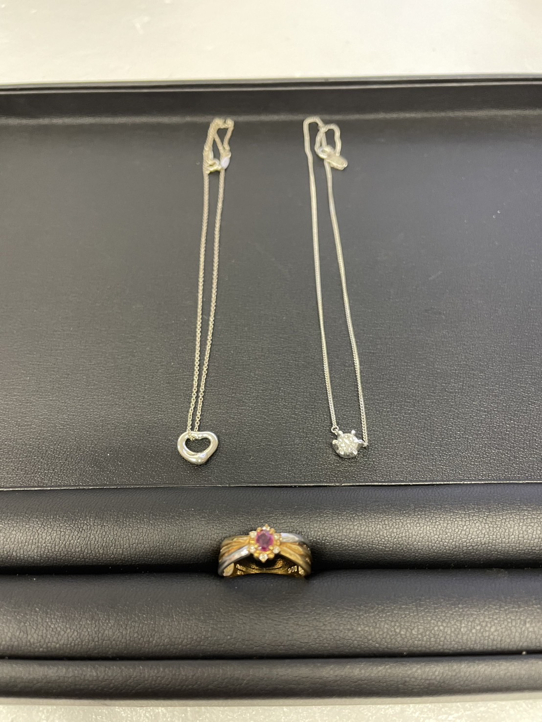先日はこちらのティファニーオープンハートネックレス、ダイヤモンドネックレス、K18/Pt900のコンビリングを高価買取させて頂きました🤗