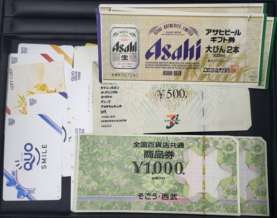笠間市・石岡市・東茨城郡・水戸市・小美玉市・桜川市・茂木町周辺のお客様こんにちは。 買取り大吉トライアル笠間店です。 お買い取りさせていただいたお品もののご紹介です。 はじめてご来店のお客様よりQUOカード・ビール券・商品券などをお買い取りさせていただきました。数ある買取り店の中当店へお越し頂きありがとうございます。ご売却ありがとうございました。 ご自宅に眠っているQUOカード・テレカ・図書カード・商品券・旅行券・ビール券などございませんか? ご使用にならない商品券がございましたら、是非お持ち込みください。