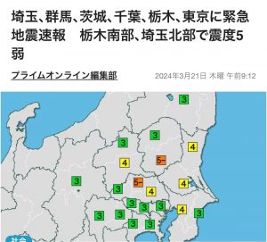 埼玉県北部のほうでは、震度5弱あったらしいです。