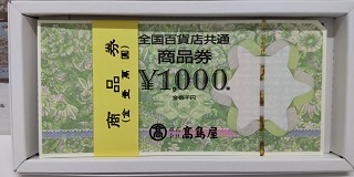 買取大吉» 店舗紹介» タチヤ各務原店» タチヤ各務原店 店長ブログ» 全国百貨店共通券をお買取りしました。