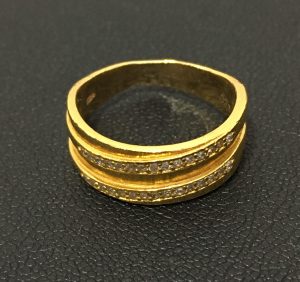 メレダイヤが流れるデザインの金のリングをお買取致しました!