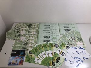 新券(折れ・シミ)が無い金券は額面に近い金額でお買取り出来ます。