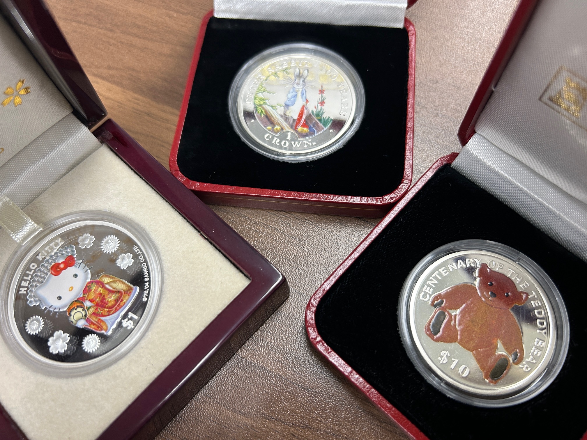 ハローキティ・ピーターラビット・テディベアなどコレクターの方に人気ある銀貨ですね。(*^o^*)