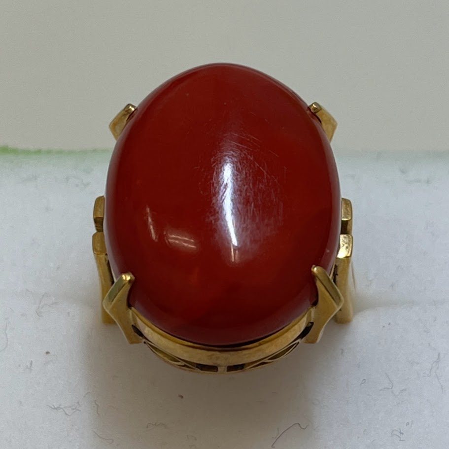 色が濃い、珊瑚のリング。